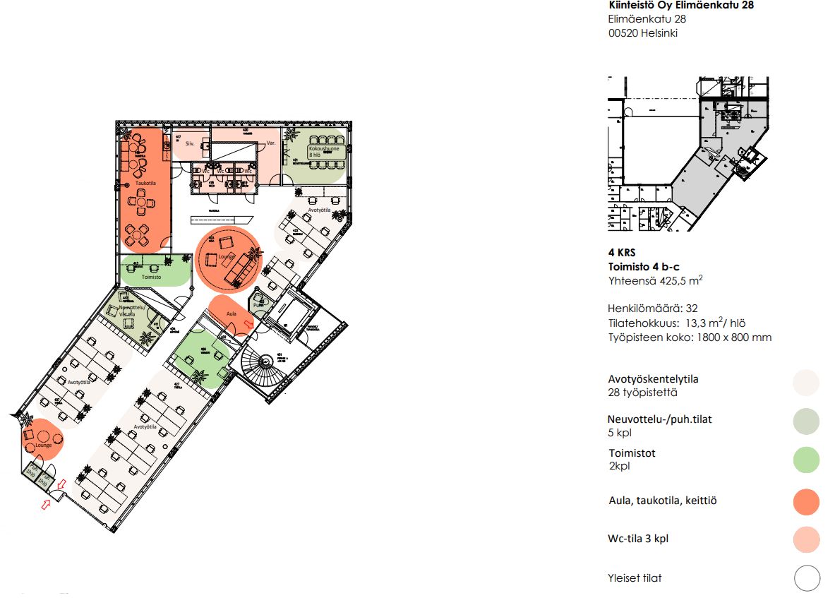Siisti ja tilava 425,5 m² toimistotila