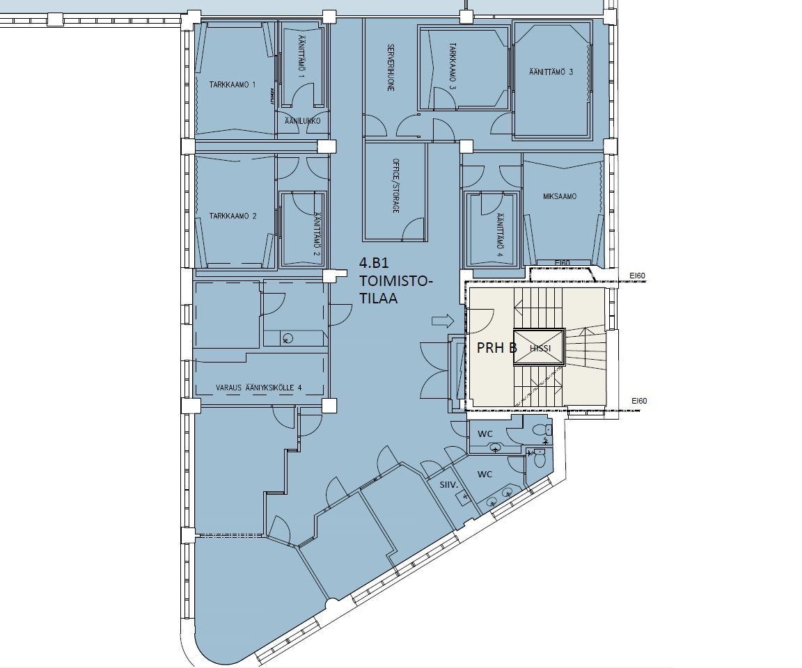 Erikoisvarusteltu 282,5 m² huonekonttori entisessä äänitysstudiossa