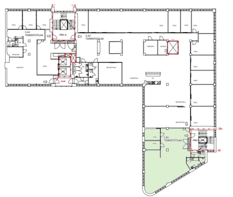 Hieno 136m² päätytoimisto viidennessä kerroksessa