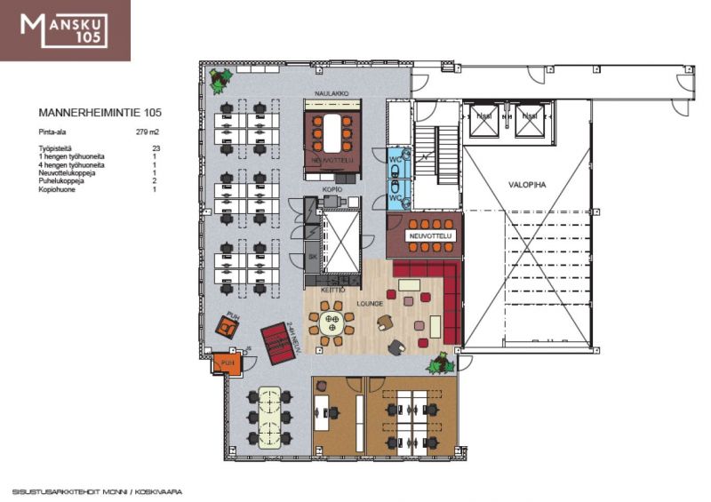 Muuttovalmis kolmannen kerroksen 279 m² toimistotila hyvien kulkuyhteyksien varrella Ruskeasuolla.
